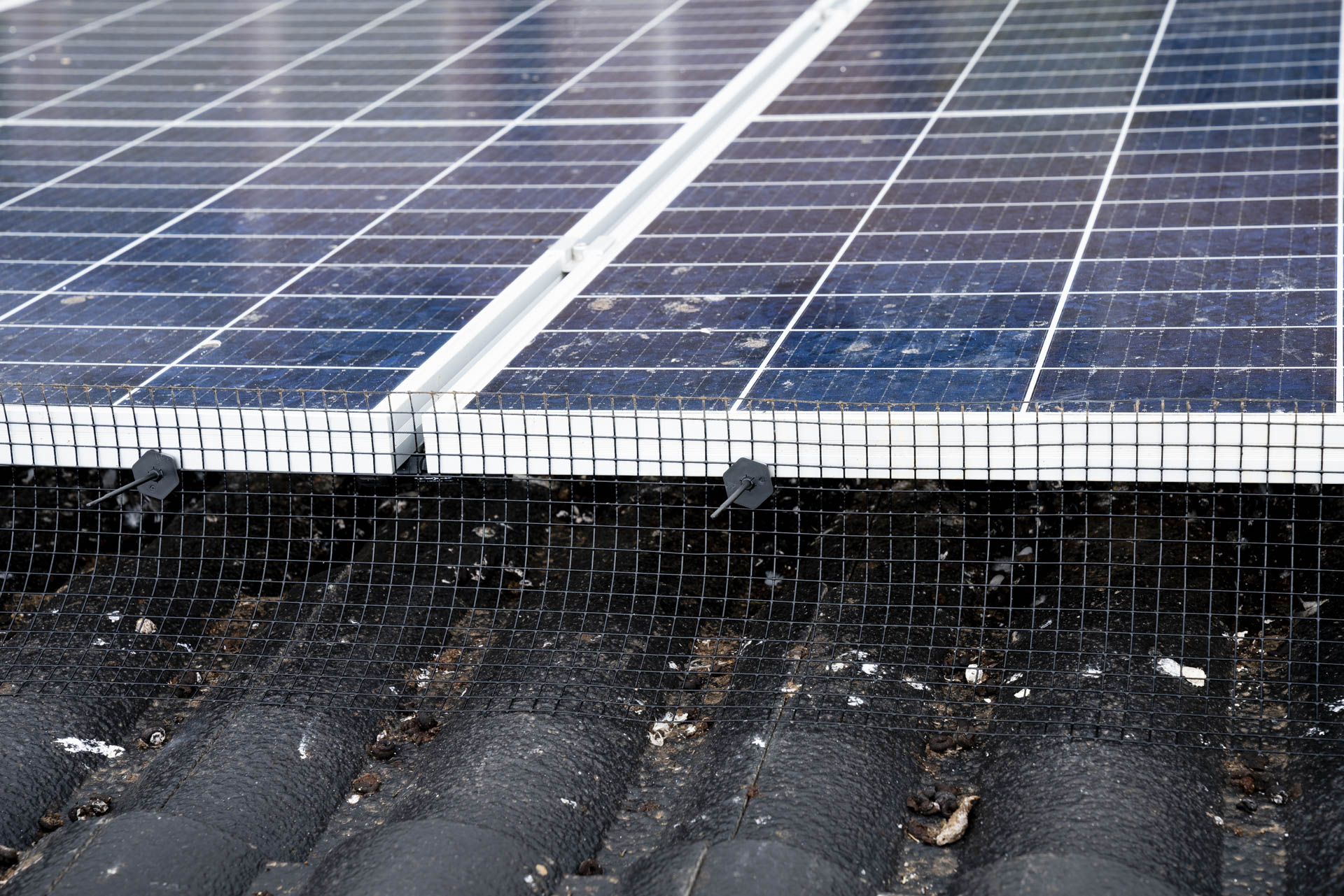 - We install a bird mesh around solar panels to stop birds from nesting